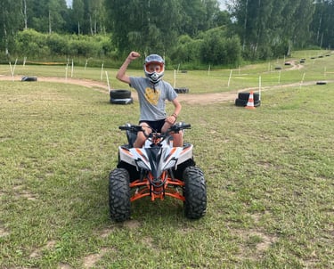 Smagus nuotykis gamtoje su vaikam skirtais keturračiais, lavinantis vairavimo įgūdžius ir pasitikėjimą.