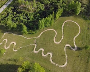 Trasa suprojektuota taip, kad matytų tėvai savo vaiką, ir nepamestų iš akių. Apie 400 metrų trasa, kurioje daug posūkių, kad vaikas neišvystytų didelio greičio.